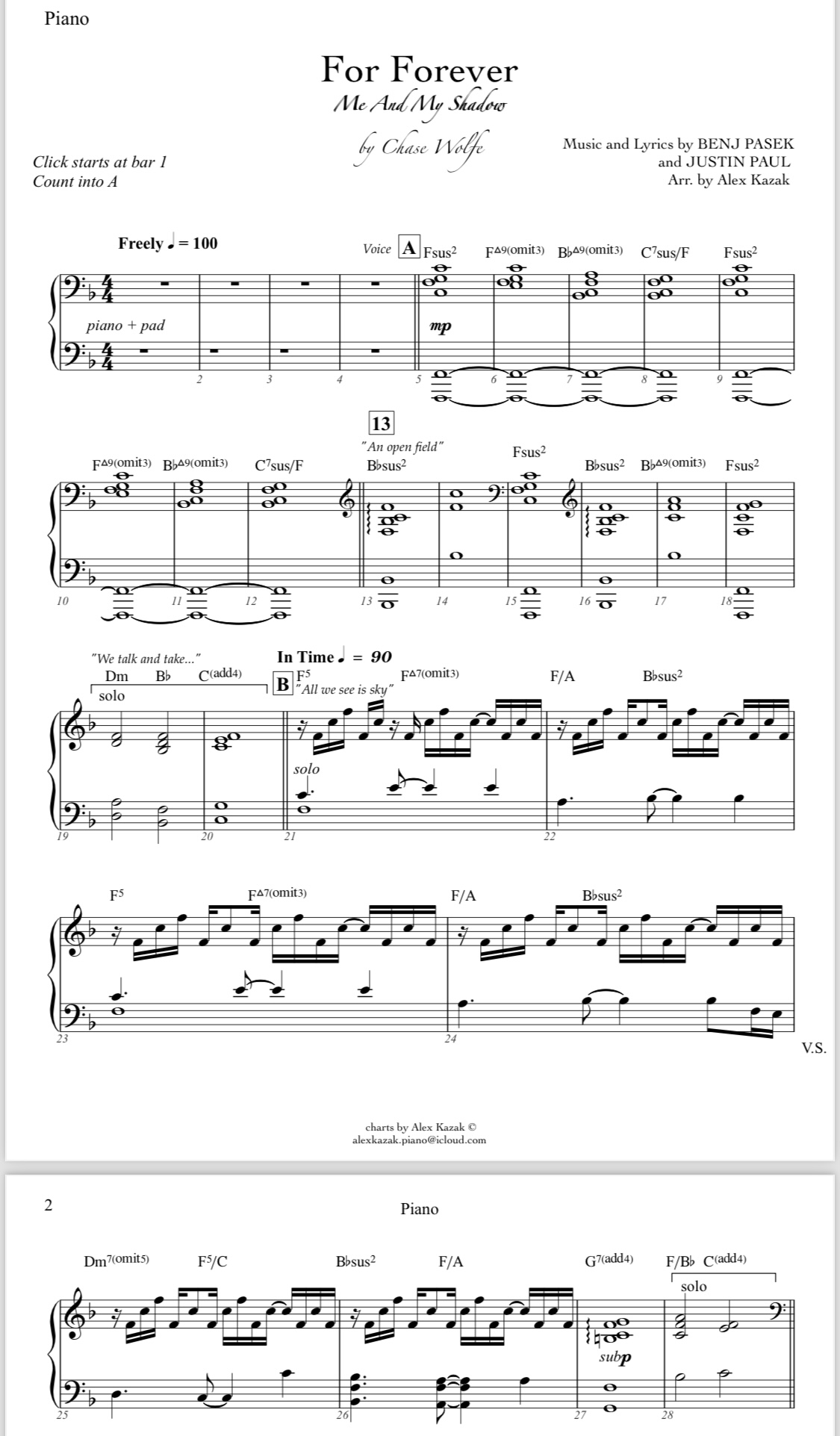 Example: 'For Forever' by Dear Evan Hansen Completely transcribed and arranged for desired band.